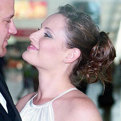 לאחר שסיימתי לתחום ולבנות את שתי הדמיות, חילקתי את התמונה לשני שטחים שווים - באחד היו פניה ובשני היו פניו. לאחר מכן כיביתי את שכבת התמונה כי כבר אין לי בה צורך.