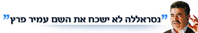 מי שתהה איפה נמצא מזכ"ל חיזבאללה מאז מלחמת הקיץ האחרון, ימצא אותו בוודאי באחד מבונקרי הארגון, מביט בתמונה מקומטת ושובר את הראש: "מאיפה אני מכיר את המשופם הזה? מהתיכון? אולי מהתנועה? אני מוכן להישבע שראיתי אותו כבר פעם". אז בניגוד להבטחות של עמיר פרץ, לא ראינו ממנו משהו שאמור היה להשאיר את נסראללה פעור פה, ונראה שמי שהיה רוצה למחוק את יולי-אוגוסט האחרונים מהזיכרון, הוא דווקא שר הביטחון עצמו.