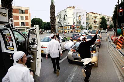 באבן גבירול כבר הייתי באופוריה: לא הפסקתי לרקוד גם כשאת הטראנס החליפה מוזיקה חסידית. אחד מהנחמנים הצעירים רקד בין המכוניות וצעק "יאללה חפירות, סוף העולם, אחרית הימים!", ואני רקדתי אחריו כאילו הודיעו ברמקולים שביטלו את מחר ושבגינות סחרוב יש עומסים כבדים בגלל חמור לבן.