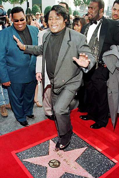 בראון רוקד על הכוכב שקיבל בשדרת הכוכבים של הוליווד, ינואר 1997 (צילום: אי.אף.פי)