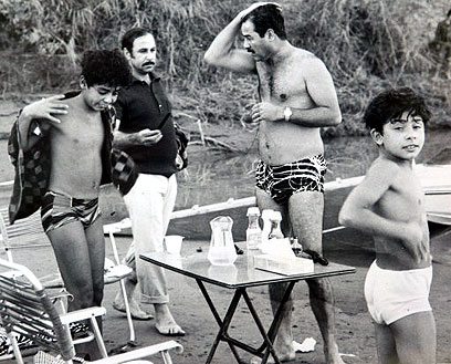 סדאם (מימין) וברזאן, עם בניו של סדאם, בתצלום לא מתוארך (צילום: רויטרס)