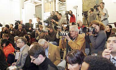 התקשורת במשכן הנשיא. גם הם חטפו (צילום: חיים צח)