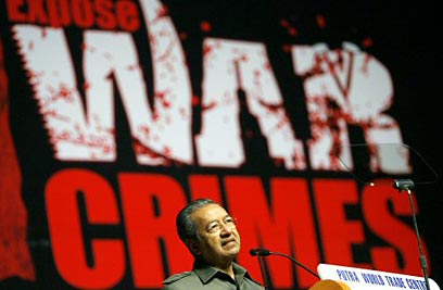 ראש ממשלת מלזיה לשעבר תקף בחריפות את נשיא ארצות הברית ובעל בריתו הבריטי בכנס שקורא להוציא את המלחמה אל מחוץ לחוק הבינלאומי. "ההיסטוריה תזכור את בלייר ובוש כ'רוצחי ילדים' או כ'ראש הממשלה והנשיא השקרנים'. הם פושעי מלחמה וצריכים לעמוד לדין"
