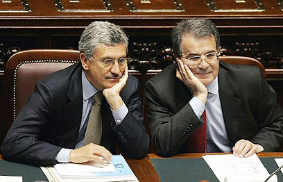 פרודי (מימין) ושר החוץ ד'אלמה, לאחר הכישלון בהצבעה (צילום: רויטרס)