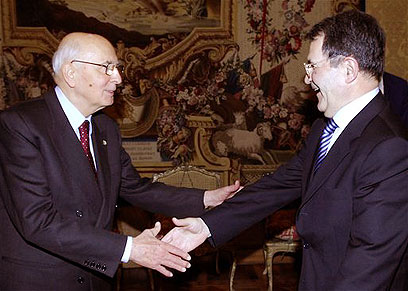 פרודי והנשיא נפוליטאנו, הערב. הנשיא קיבל ההתפטרות (צילום: איי.פי)