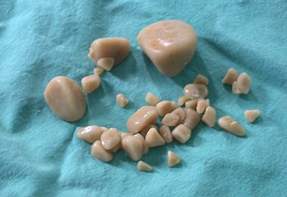 האבנים היו בגודל שמונה ס"מ ומעלה. במצב כזה של סתימה מלאה נתקלים במרפאות אחת לשנתיים-שלוש", אומר ד"ר קריינר ומבהיר כי דרושה פעולה עדינה ומיומנת בכדי להסיר כל גרגיר קטן, על מנת שלא ישמש מצע לגדילה מחדש של האבנים.