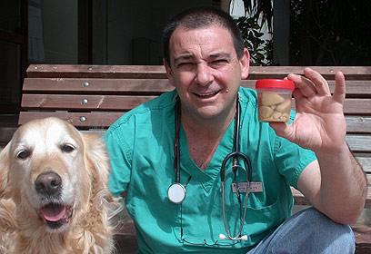 סנדי, כלבת הגולדן ריטריוור של משפחת טאובר מהישוב חשמונאים, סחבה במשך תקופה ארוכה מטען לא קטן בגופה. הכלבה בת ה-7 לא סבלה עד כה מבעיות בריאותית ולדברי בני המשפחה, היא יצאה לעשות את צרכיה בזמן הטיול היומי המשותף ורק לאחרונה תדירות בקשותיה לטיולים החלו לעלות בצורה ניכרת.