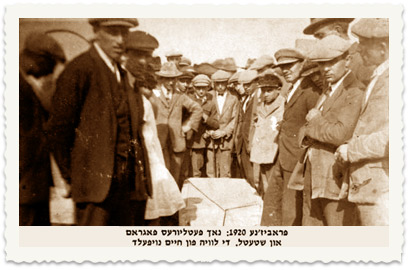 הלווית חיים נוייפלד תושב העיירה שנרצח בפוגרום "פטליורה" ב-1920