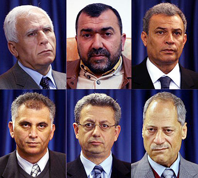 מוחרמים. שרי הממשלה החדשה. משמאל למעלה, בכיוון השעון: סגן ראש הממשלה עזאם אל אחמד, שר הפנים האני אל-קוואסמה ושר החוץ זיאד אבו-עמרו, שר הרווחה סלאד זיידאן שר הההסברה מוסטפא ברגותי, שר התרבות בסאם אל סלהי (צילום: סי"צ)