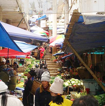 חלק תיירותי בשוק מציע תיקים ובובות רקומות, אבל השוק האמיתי מיועד למקומיים. בשוק הבשר ראינו קצבים המקלפים ראש של חזיר במומחיות רבה. בקערת פלסטיק גדולה מונחים המעיים - מעי דק ליד המעי הגס ממש כמו בשיעורי האנטומיה בבית הספר, רק שכאן זה חלק מהסעודה. נשות שבט FLOWER HAMONG - שם שניתן בזכות התלבושת הצבעונית - דופקות הופעה עם מטפחת ראש בצבעי ורוד וטורקיז, חצאית קטיפה מרובת שכבות וצבעים, חולצה מכווצת שרוולים עם וואלנים ותיק קטן ורקום.