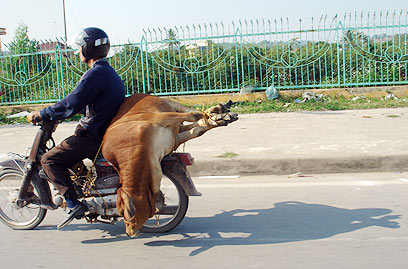 כשחשבתי שכבר ראיתי הכל, פגשנו פרה רוכבת על אופנוע. לא, לא כנהגת. הפרה קשורה לאופנוע כשראשה כלפי מטה. קיוויתי בשבילה שהיא כבר בעולם שכולו טוב ורק מועברת בדרך זו למקום מנוחתה האחרונה. אך לא, עיניה הגדולות הביטו בי בתהייה כשחלפנו על פניה. המראה היה ביזארי אפילו עבור הנהג המקומי שלנו שהאט בזמן העקיפה כדי שנוכל לצלם. ילדים קטנים, אולי בני ארבע, הולכים לבד על הכביש הבינעירוני בדרך הביתה מהגן ואני חווה אימהות רגועה יותר מזו שלי, ושמחה שבני הקט לא נמצא איתי כרגע. הילד בן 11 ועדיין אסור לו ללכת לבד לחברים.