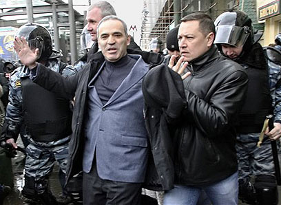 משטרת רוסיה עצרה הבוקר (שבת) את גארי קספרוב, אחד ממנהיגי האופוזיציה במדינה, ויותר מ-170 פעילים שניסו לקיים הפגנה בבירה מוסקבה. קספרוב, לשעבר אלוף העולם בשחמט, נופף למצלמות וחייך בעת שהוכנס לרכב משטרתי.