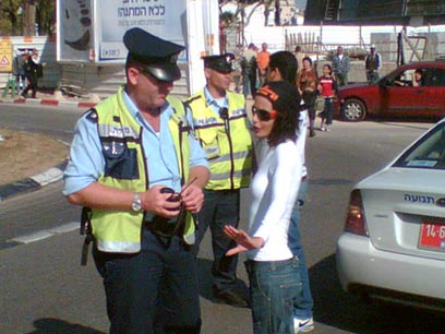 בקי גריפין ושוטרי תנועה בהפגנת הסטודנטים