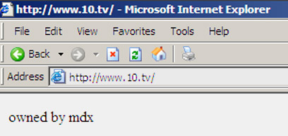 אתר ערוץ 10 נפרץ והושחת במהלך סוף השבוע. עד לשעות הבוקר (אק) התנוססה באתר שורת טקסט בלבד בה נכתב "owned by mdx" - הודעה אופיינית להשחתות מסוג defacement המכריזה "בעלות" על האתר מצד קבוצת ההאקרים, במקרה זה של פורץ או קבוצה בכינוי mdx.