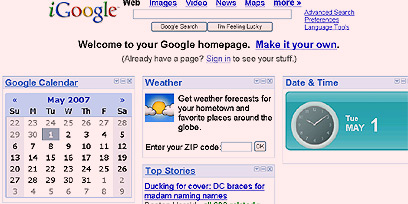 גוגל מיתגה היום (ג) מחדש את שירות עמודי הבית המותאם אישית שלה תחת השם – iGoogle, לאחר שפעל במשך שנתיים תחת השם הכללי "personalized homepage". זאת, בגלל התנגדות מייסדי החברה, לארי פייג' וסרגי ברין, לשם iGoogle.