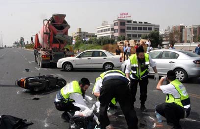 תאונת הקטנוע בצומת אזור (צילום: עופר עמרם)