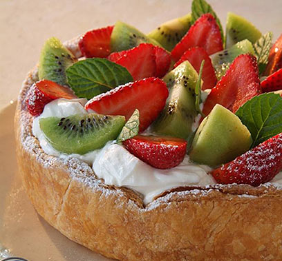 טארט גבינה מבצק עלים בקישוט פירות טריים