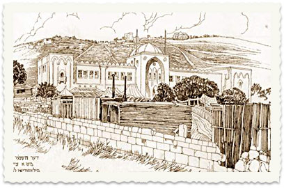 בניין הטכניון הישן (על התצלום ביידיש: דער חיפער פאליטעכניקום מיט א צייטווייליגן מיליטערישן לאגער אין הויף)