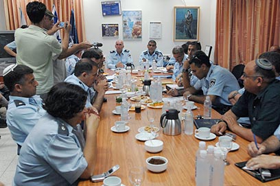 הערכת המצב בתחנת המשטרה בשדרות (צילום: אמיר כהן)