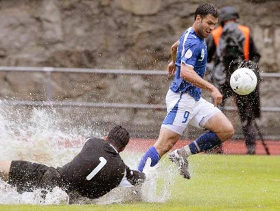 בדקה ה-23 ראה קשטן את חלום היורו כמעט ומתנפץ מול עיניו - הגבהה סתמית של אנדורה היתה קרובה להפוך לשער עצמי של דדי בן דיין. המשחק החלש מצד שתי הנבחרות נמשך. בדקה ה-38 הצליחה ישראל לשבור את השיוויון, הרבה בעזרת תנאי המגרש הקשים - כדור ארוך אל עברו של רוברטו קולאוטי נעצר על אחת השלוליות ברחבת אנדורה, החלוץ הקפיץ מעל השוער והגביה בקושי לטוטו תמוז, שנגח פנימה מקרוב. 0:1 לישראל.