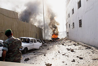 הסמטה שבה אירעה ההתנקשות. נזק רב נגרם למבנים מסביב (צילום: AP)