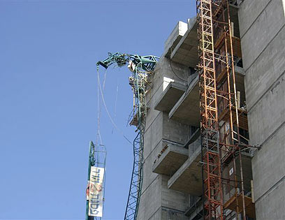 מנוף קרס באתר בנייה ותא המפעיל נחת על הקרקע לאחר שניתק ונפל מגובה של 30 מטר. רופא קבע את מותו של המפעיל, אך חילוץ הגופה התעכב בגלל שזרוע המנוף עלולה לקרוס
