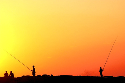 כמו קודמתה, גם תמונה זו צולמה בשעה מיוחדת, שעת השקיעה. תל אביב מתבוננת אל יפו דרך הסלעים. חדי העין יבחינו משמאל לדייג הימני בגל שמתנפץ אל הסלעים