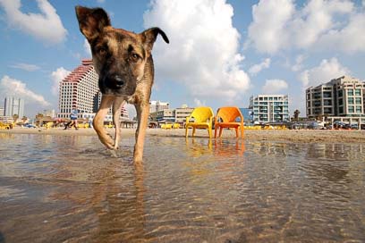 בחופים הדרומיים של תל אביב יש אגמון קטן באמצע החוף שמתנקז אל הים. בזמן שחיכיתי להשתקפות טובה, השגיח בי הכלב ובא לשאול למעשיי