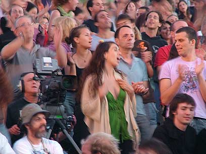 את השורות הראשונות ממלאים חברי מועדון המעריצים. חולצות, כרזות, סיכות, זיקוקין דינור וכל האינצ'ילאדה. הם באו מאהבה, וגם הם, כמו כל שאר הקהל שהגיע למצדה, מצטרף למילים.