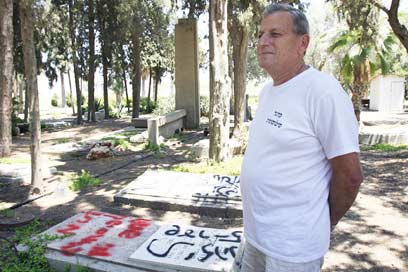 צילה עופר, האחראית על בית הקברות בקיבוץ חולדה, אמרה הבוקר ל-ynet: "אני אחראית על בית העלמין שלנו ואני מתחזקת אותו ודואגת שיהיה נקי. ראיתי את הכתובות קצת אחרי השעה 07:00 בבוקר. ראיתי את שני הקברים צבועים באדום ושחור, מכוסים בכתובות איומים באדום ושחור".