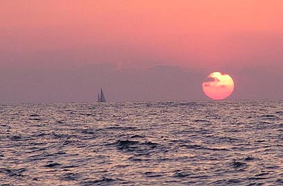 שקיעה נוגה. הים אובד בערפל (צילום: אחיה ראב"ד)