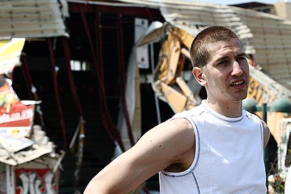 מתן נאור על רקע האולם ההרוס. נפרדים מאוסישקין (צילום: אבי קדם)