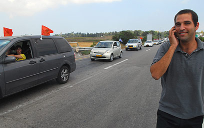 "מודיעין שווה שדרות". כהן מנהיג את השיירה הקודמת (צילום: גדי כהן)
