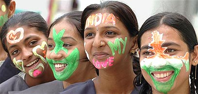 תלמידות הודיות מקושטות בצבעי הלאום (צילום: AP)