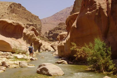 אנחנו שבים לערוץ הנחל וממשיכים ללכת לכיוון ים המלח. החום עולה ואיתו גם קירות מצוק אבל החול. את הקילומטרים האחרונים אנחנו הולכים בתוך קניון עמוק ומתפתל שנראה שלא יגמר לעולם. חולפים עוד כמה פיתולים ואנו מגלים קירות קטנים שהמקומיים הקימו כדי לחסום מעט את המים וליצור בריכות רדודות. לכאן באים תושבי הערבה הירדנית כדי לעשות פיקניק ולהשתכשך במים. סימנים ראשונים של ציביליזציה.