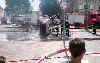 המכונית שהתפוצצה בעכו (צילום: אורי שטרית)