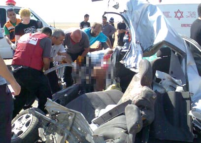 זירת התאונה על כביש הערבה (צילום: אליעד לירון, תנ"צ)
