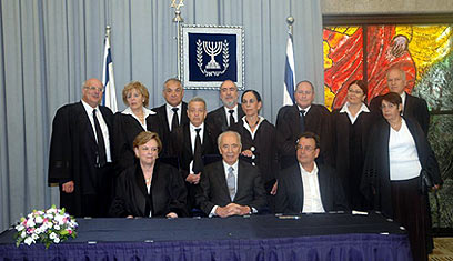 גם הנשיא, שמעון פרס, נשא דברים, בטקס שהתקיים במשכנו בירושלים. "מחוקקים אינם שופטים, שופטים אינם מבצעים - ושרים אינם מחוקקים ואינם שופטים. אבל הם אחראים שכל המוסדות יוכלו לפעול ללא עירוב תחומים", אמר. "המבחן הוא לא רק בקיום הפרדה ברורה בין שלוש הרשויות, אלא גם במניעת חיכוכים ובהתקנת חיישנים וחומרי ריכוך במקומות מפגש והשקה".