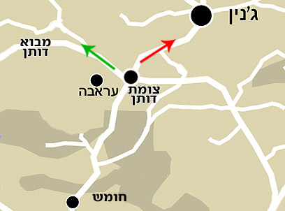 הצומת בה פנה הקצין לכיוון ג'נין, בשטח האסור לכניסה