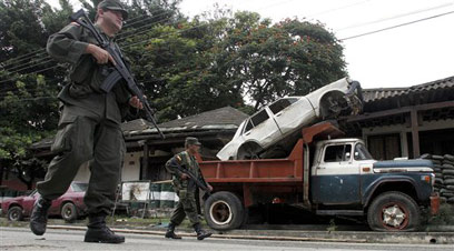 שוטרים בקולומביה בחיפוש אחר מורדים, אתמול (צילום: AP)