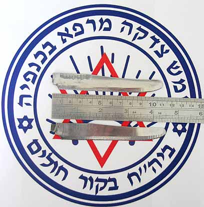 יש כאלה שמבשלים במטבח משהו אחר: לבית החולים "ביקור חולים" בירושלים הובהל ביום חמישי האחרון גבר לאחר שהתלונן על כאבי בטן עזים ובחילות. צילום רנטגן גילה בבטנו 2 סכיני מטבח, שנשלפו בניתוח מורכב. מצבו כעת טוב, והוא ישוחרר לביתו.
