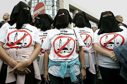 מפגינות עם חולצות "לעצור את האיסלמיזציה" (צילום: רויטרס)