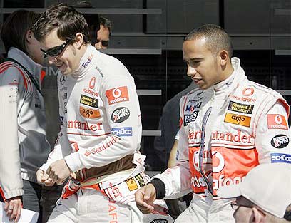 אלונסו (שמאל) והמילטון. יכולים להמשיך ולחייך, ולהיאבק על האליפות