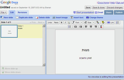 גוגל הוסיפה הבוקר (ג') כלי מקוון לעריכת מצגות (בדומה ל-PowerPoint של מיקרוסופט) ל-Google Docs, הכלי מקוון לעריכת מסמכים וגיליונות אלקטרוניים.