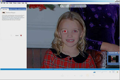 יכולת תיקון עיניים אדומות היא תכונה שגרתית בתוכנות לעריכת תמונות. חלק מהתוכנות עושות זאת באופן אוטומטי, וחלק - כמו Picasa - מאפשרות למשתמש לעשות זאת באופן ידני.