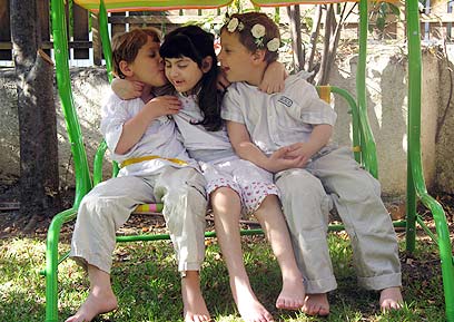 מימין: שקד, גיא וירדן. "תהיתי אם אוהב אותם כמו שאני אוהבת את ירדן"