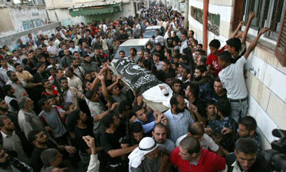 גופתו של חסאנאת, אחרי ההתנקשות בעזה (צילום: איי.פי)