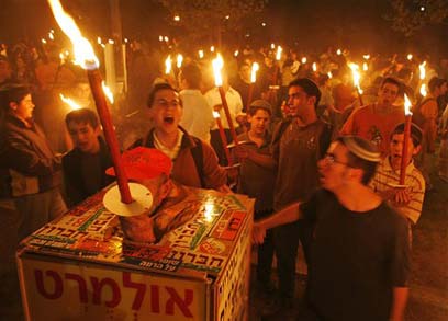 מאות מתנחלים ופעילי ימין, צעדו הערב עם לפידים מכיוון הקונסוליה האמריקנית בירושלים למצודת דוד, שם הפגינו בזמן פגישתו של אולמרט עם רייס ובלייר. ההפגנה אורגנה על ידי מועצת יש"ע.