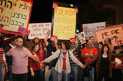 מורים מפגינים מול בית הדין (צילום: גיל יוחנן)