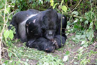 במשך שעה ארוכה צפינו ביצורים הנהדרים האלה. בראש המשפחה נמצא הזכר הדומיננטי "כסוף הגב" (Silver Back) - יצור ענקי השוקל כ-200 ק"ג ומתנשא לגובה של כ-1.80 מטר ואורך ראשו נראה ככפול משל אדם ממוצע. סביב הזכר הדומיננטי ישבו דרך קבע שלוש נקבות, שאחת מהן היתה עסוקה בהנקה.